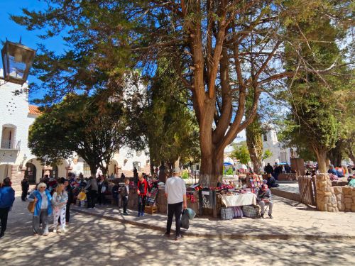Al frente de la iglesia, la plaza de Uquía ofrece una feria de productos artesanales y souvenirs, todo en pequeña escala.