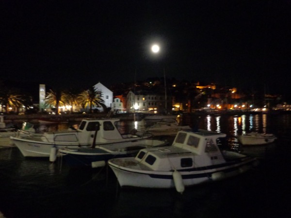 Se venía la tardecita y solo quedaba volver para cenar y dormir. Si bien no había fiesta, la noche de Hvar tiene su encanto, y más si te toca luna llena!
