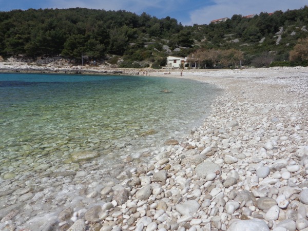 Saliendo del casco antiguo hacia el interior de la isla, Hvar es una ciudad «normal» que no merece mucha visita. Sin embargo, por la costa sí se pueden recorrer algunos kilometros y encontrarse paisajes preciosos, playas o terrazas o muelles para descansar. Las playas son mayormente de piedras, no es lo más cómodo para tirarse a tomar sol, pero igualmente se pueden disfrutar sin necesidad de calzado. Yo de todas formas después de andar bastante, opté por elegirme una buena terraza con reposeras vacías para disfrutar un baño y un merecido descanso.