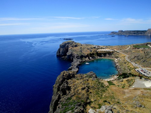 - Playa de Lindos: Peciosa, con espacio libre y servicios de reposeras y bares. Con la vista del castillo de Lindos en lo alto